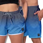 Kit Short Casal Masculino Feminino Degrade Cinza Azul