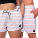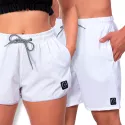 • Acabamento com viés branco (laterais e barra) no short feminino