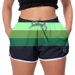 Kit Short Casal Masculino Feminino Listrado Verde e Preto